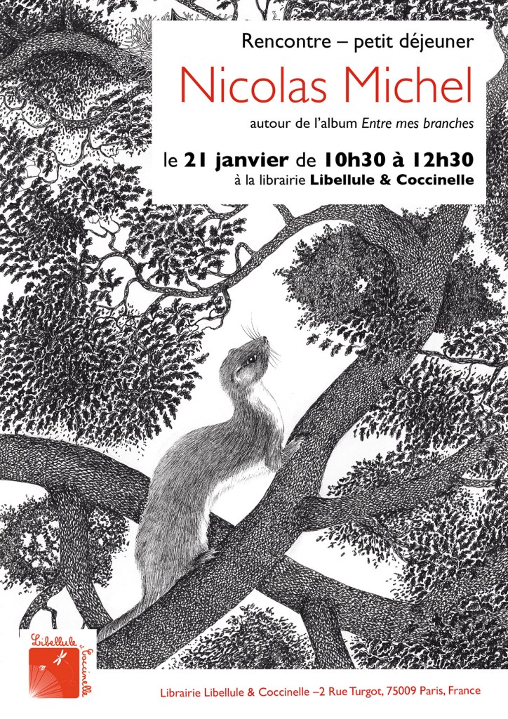 Pour commencer l’année bien enracinée et la tête dans les nuages nous vous proposons de venir découvrir le merveilleux album » Entre mes branches » de Nicolas Michel samedi 21 janvier à partir de 10h30.